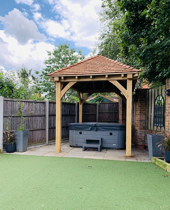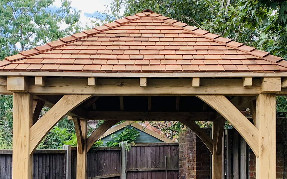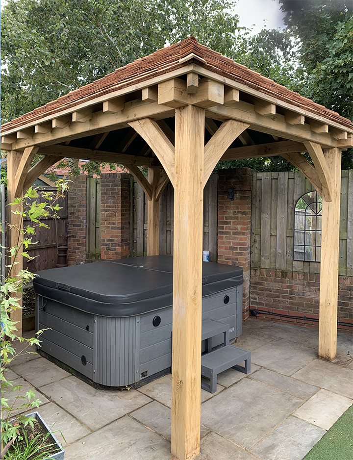 The project. To source and build a high quality oak framed Gazebo for additional covered entertaining space.